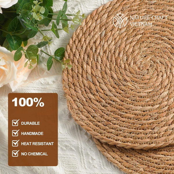 Are you looking for a dining table decoration that's rustic yet eco-friendly? Nature Craft Vietnam's handwoven water hyacinth placemat is the perfect choice to add a delicate touch to your dining area. Crafted entirely by skilled artisans, this product combines the natural, earthy beauty with high aesthetics and exceptional durability. Ideal for family spaces, restaurants, hotels, resorts, and decor projects embracing a natural-sustainable style, this placemat is not just a utility item but a symbol of green living.