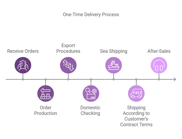Our one-time delivery process is streamlined to ensure efficiency and customer satisfaction, encompassing every step from receiving orders to after-sales support, with a focus on quality and compliance with international shipping standards.